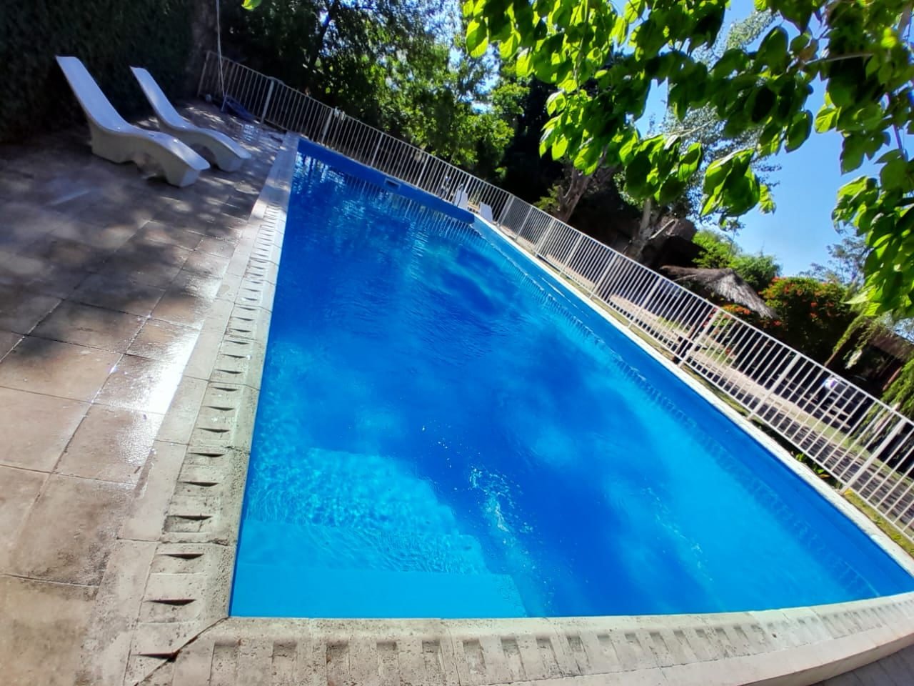 El complejo Hojas de Campo cuenta con una pileta de 5m x 12m con una profundidad de 1.30 en parte baja y 1.60m en parte profunda, con reja de seguridad para niños, espectacular para los días de verano, Veni a refrescarte y pasar unas lindas vacaciones en familia !!!!
