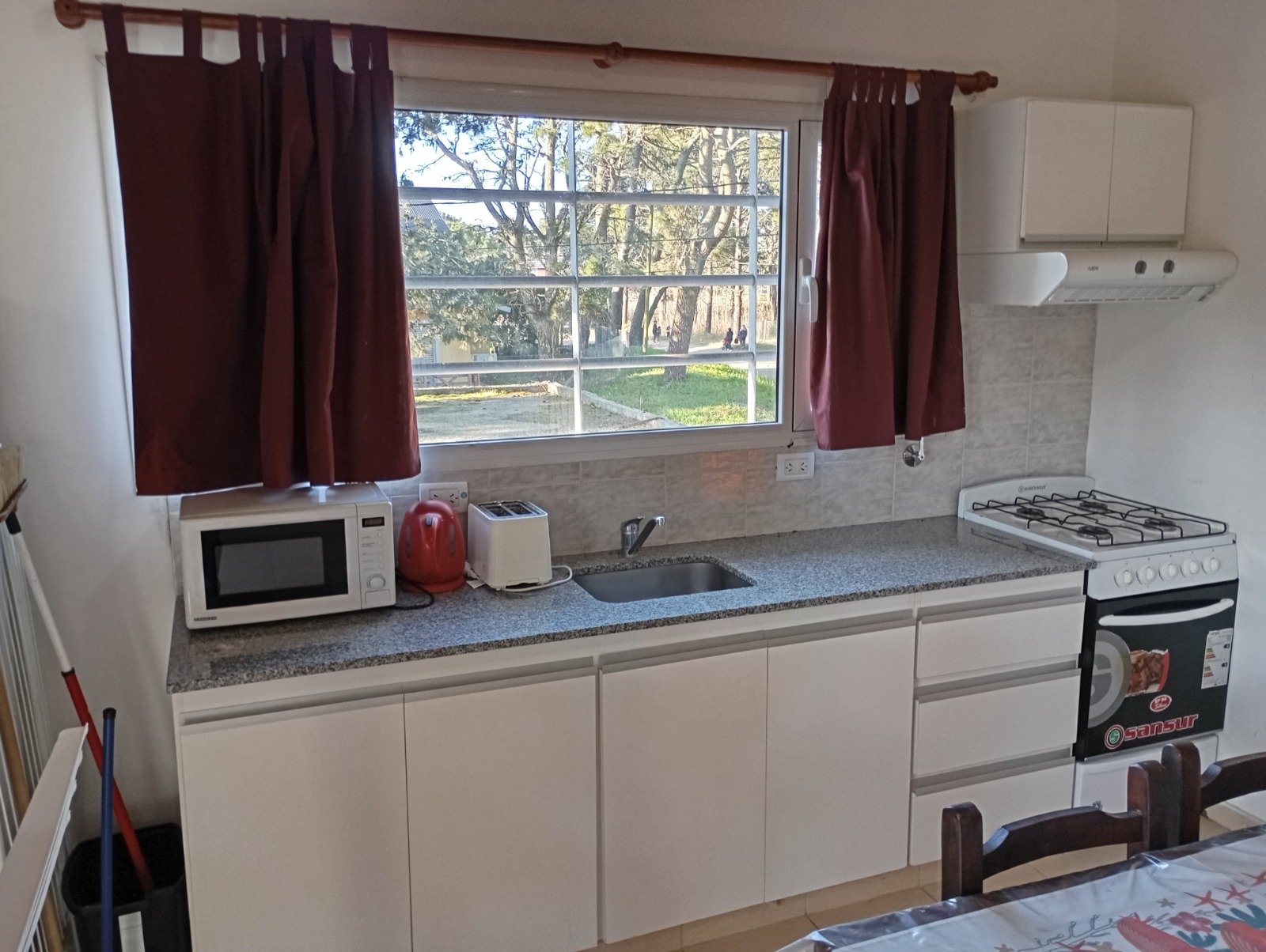 WIFI de uso común- EN DORMITORIO AIRE ACONDICIONADO – TV RoKu- Heladera con freezer – Tostadora eléctrica – Jarra eléctrica – Microondas – Vajilla Base – Cocina con horno – Gas natural Calefacción – Agua corriente – Secador de pelo –Camas Somier – Parrilla individual – Espacio Exterior de uso comun– Mesa y sillas de jardín – Estacionamiento perometral Acolchados y frazadas (no sabanas/toallas)