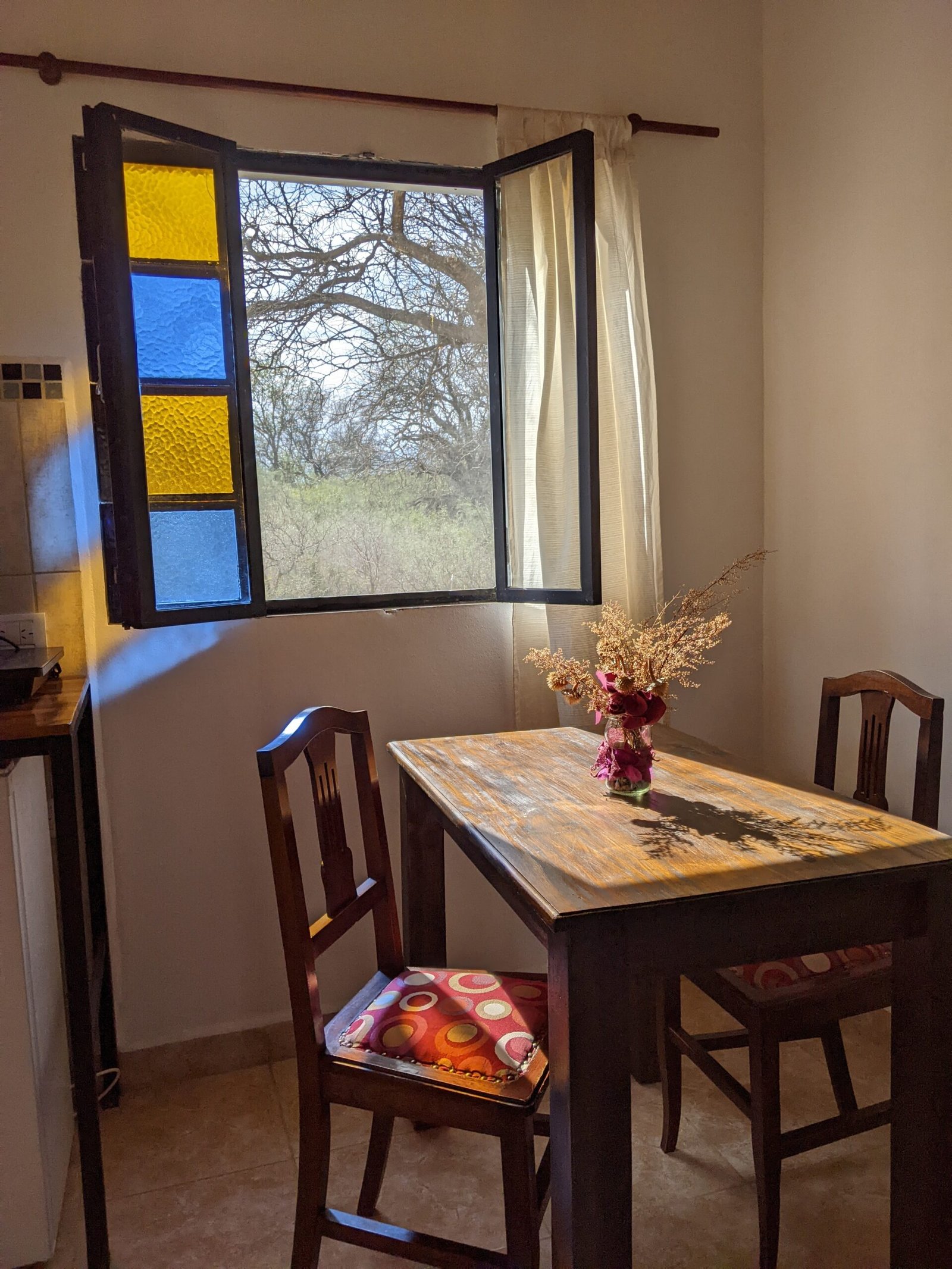 Sus grandes ventanales hace que el monte nativo se introduzca dentro la cabaña. Es un lugar ideal para descansar, hacer caminatas, avistaje de aves y pasear.