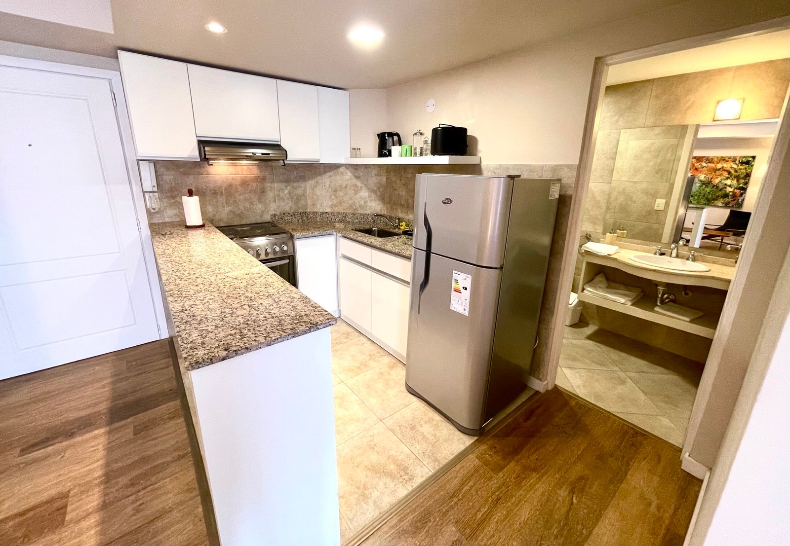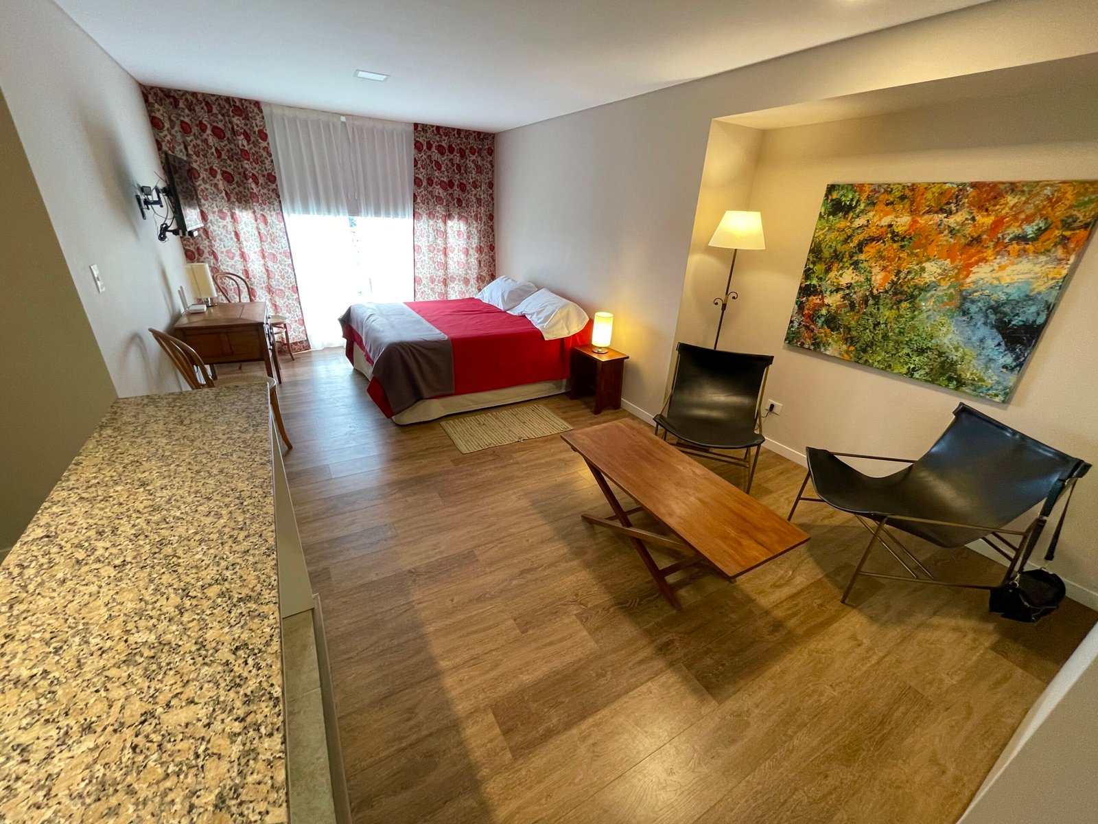 Departamento con cama doble en el tranquilo y seguro barrio Belgrano de Bariloche, a solo 3 cuadras de pleno centro. Calefacción central, wifi, cocina completa. Una vista al lago espectacular. Confort y comodidad para disfrutar de paseos y descanso en Bariloche.