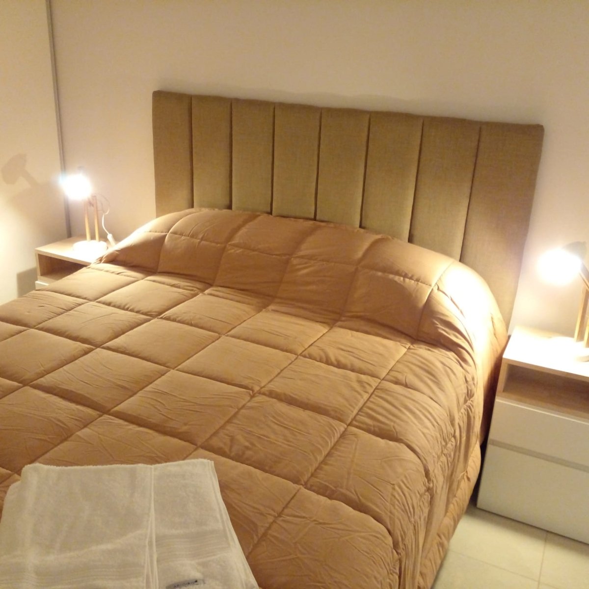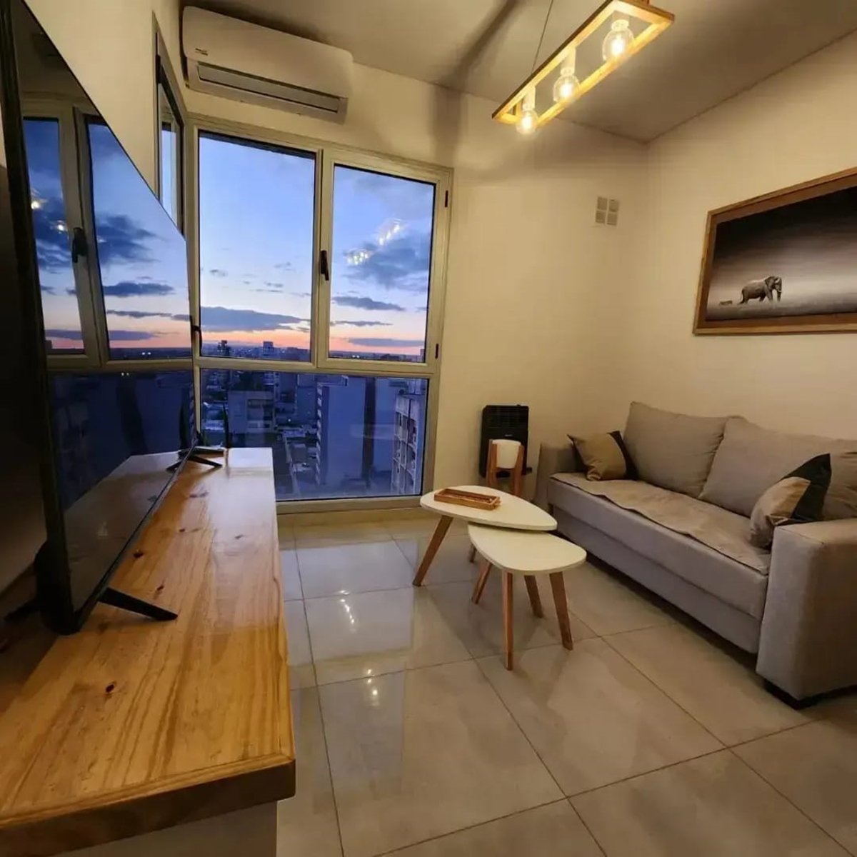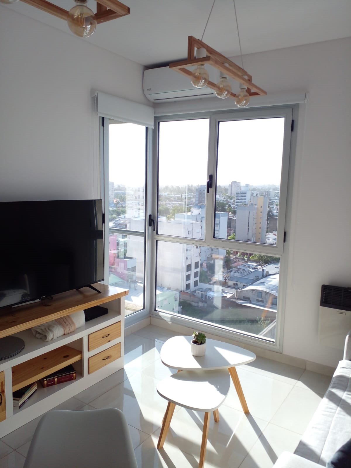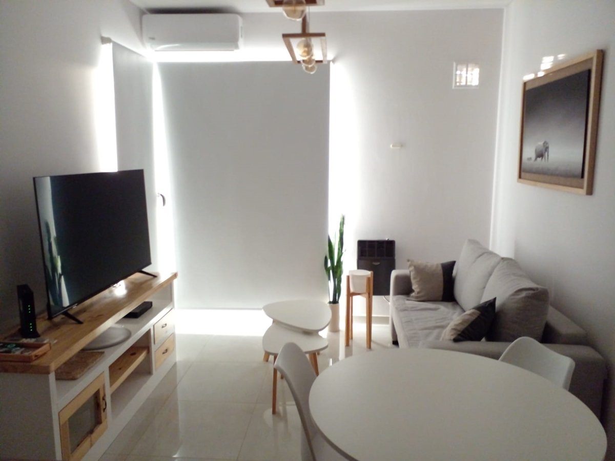 Departamento en pleno centro de Bahía Blanca, piso 12 al frente con balcón, excelentes vistas, de la ciudad y del mar. Capacidad máxima 4 personas. Nuevo. Luminoso. Silencioso. Una cama de dos plazas en la habitación y un sofá cama de dos plazas en el living. Aire acondicionado en todos los ambientes. Excelente calefacción. Amplio y cómodo placard. Smart TV 55 pulgadas en el living. Smart TV 40 pulgadas en la habitación. Netflix. Tv por cable. Pack fútbol. Wi fi gratis. Juegos de mesa. Totalmente equipado. Servicio de Frigobar. Ropa de cama y toallas de calidad premium. Cochera cubierta en el edificio, con costo adicional. Terraza equipada, para almorzar o cenar, en el piso 15. Amenities de baño y amenities para desayuno. Heladera con frezzer. Hielo. Microondas. Pava eléctrica. Tostadora. Plancha. Secador de pelo. Estricta limpieza. Cuidada seguridad en el edificio, con cámaras en los lugares comunes. Amplio y hermoso lobby en el hall de entrada. Dos ascensores. Atención personalizada por sus propios dueños. Excelente relación calidad-precio.